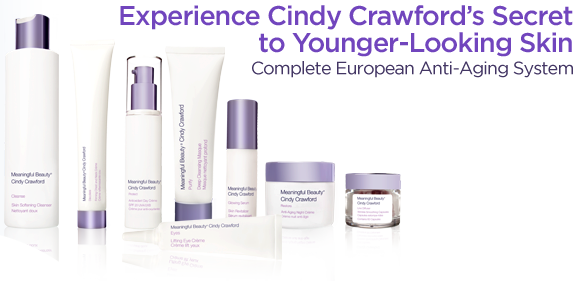 So, what's her secret ? Well, according to the Meaningful Beauty website, "Her secret is French anti-ageing specialist Dr. Jean-Louis Sebagh and his revolutionary "Age Maintenance" approach to skin care. Since first experiencing the dramatic results of his youth-enhancing treatments over 15 years ago, she's been a fan, friend and client of this world famous skin specialist." Am I convinced ? Well, I'd like to be - it's so much more reassuring and down-to-earth than the usual celeb chemical peels, Botox and cosmetic surgery. Let's just say that when I was given the chance to try out the Meaningful Beauty skin products, I didn't just jump - I pole vaulted - at the chance ! After all, the range is described as "the advanced European anti-ageing system that Cindy Crawford trusts to keep her skin looking youthful and vibrant".