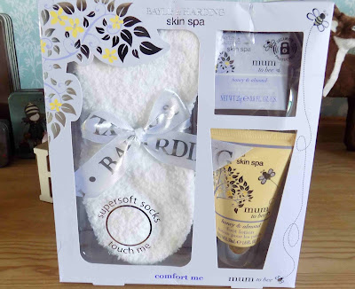 I received the Mum To Bee "Comfort Me" Sock Set (£6) that you can see above, which includes some gorgeously soft and fluffy socks, some foot lotion and some foot soak crystals. When I was pregnant with Sophie, I had the start of pre-eclampsia and my feet puffed up and felt horrible so these would have been a godsend then. Finding me-time is hard when you're a new mum but you could soak your feet while feeding baby then, if you're lucky, get the doting dad to massage your feet with the lotion when baby has fallen asleep on you !