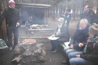 That's not all they had though - despite the temperatures bouncing around zero and a few snowflakes falling from the sky, they gaily announced that we'd be having lunch outside and started unpacking water, cooking supplies and wood !