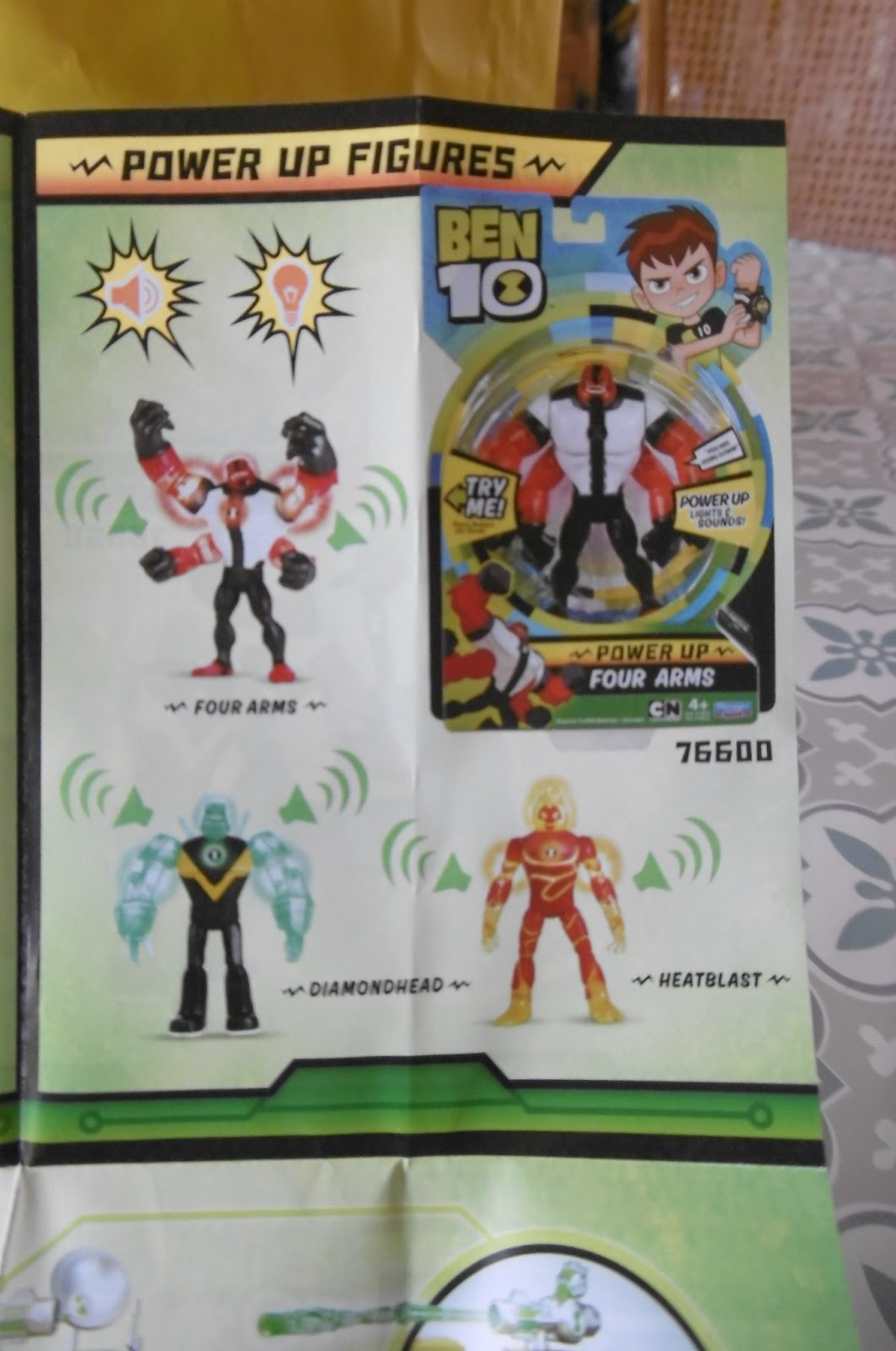 We also discovered the range of basic action figures (8 available), which are articulated and come with accessories to encourage imaginative make-believe play. Each figure is approximately 4-5.5 inches tall. The flyer in each pack also shows off the Power Up figures (3 available), which have a power-up button to give your alien a surging burst of energy, complete with unique light up effects and signature alien phrases - and the Super Deluxe figures (choose between characters Heatblast and Forearms), which are 11" tall.